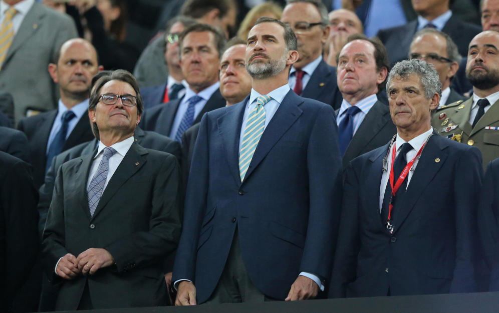 AR.- Siento de nuevo importunarle, Majestad, en momentos que aunque muy graves para la nación española, puede que no lo sean tanto para usted. De nuevo una final de Copa en la que, más allá de lo probable, los aficionados catalanes del Fútbol Club Barcelona volverán a pitar, de forma masiva, el himno nacional español y a usted mismo, en los prolegómenos del encuentro. Todo indica un aumento en la virulencia de los silbidos por parte de la afición azulgrana, fruto de una campaña alentada y alimentada por grupos independentistas, medios informativos catalanes y representantes de la entidad barcelonista, empezando por su presidente, a quien usted probablemente dará la mano con la mejor sonrisa.