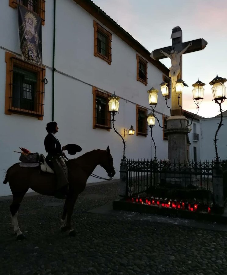 El diestro sevillano Morante de la Puebla ha difundido en Instagram una imagen que ha fascinado a sus seguidores y amantes del mundo del toro y Córdoba. El diestro aparece en la instantánea subido a caballo y vestido de corto ante el Cristo de los Faroles de Córdoba.