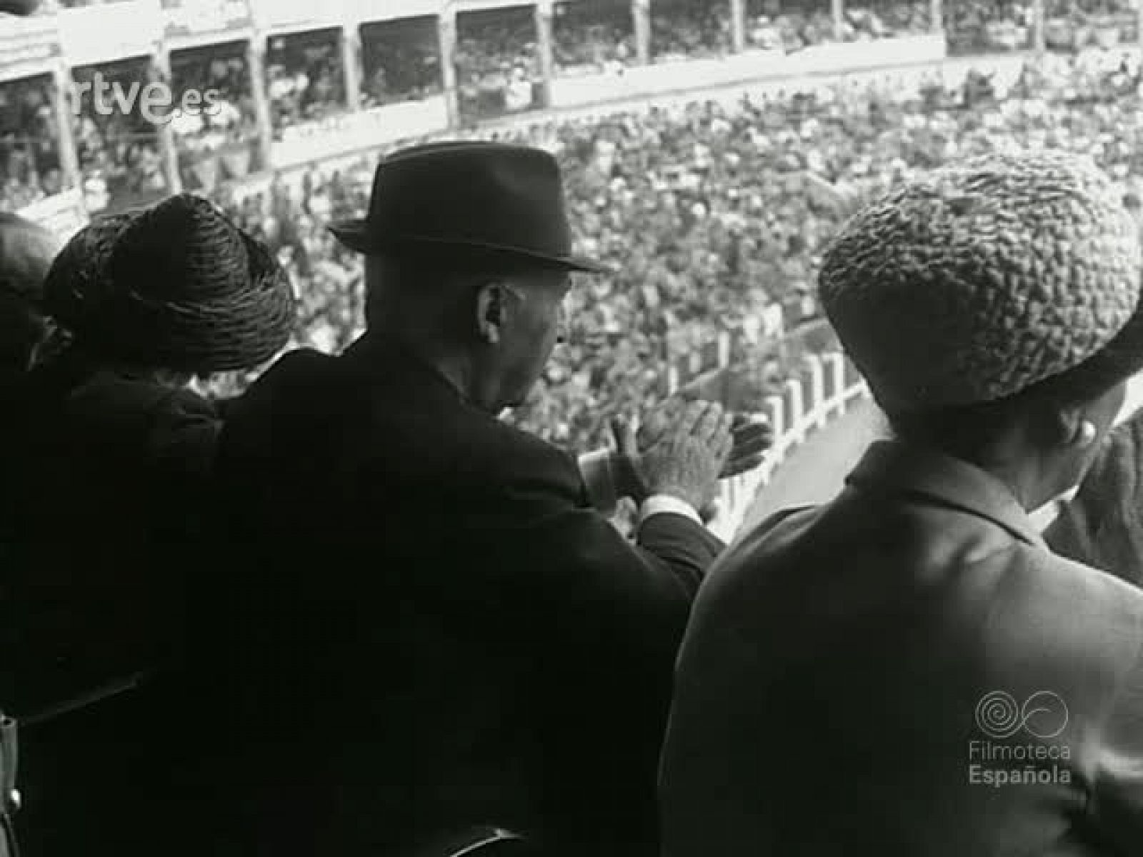 Agosto de 1967. S. E. el Jefe del Estado, Francisco Franco, acompañado de su esposa, Dª Carmen Polo en el palco oficial de la plaza de Toros de La Coruña.