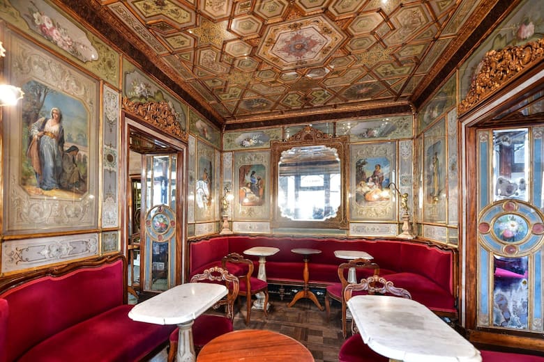 De vuelta en San Marcos cruzar uno de sus arcos porticados hasta vislumbrar un piano de cola y sentarnos en el Caffé Florián, el más antiguo de Italia, donde todo resulta muy soigné y de otros tiempos en los que su elegancia era la norma; ese precioso café que durante el Carnaval se llena de máscaras narigudas de médico en tiempos de la peste, y de trajes de época, una invasión de María Antonietas y Gatopardos.