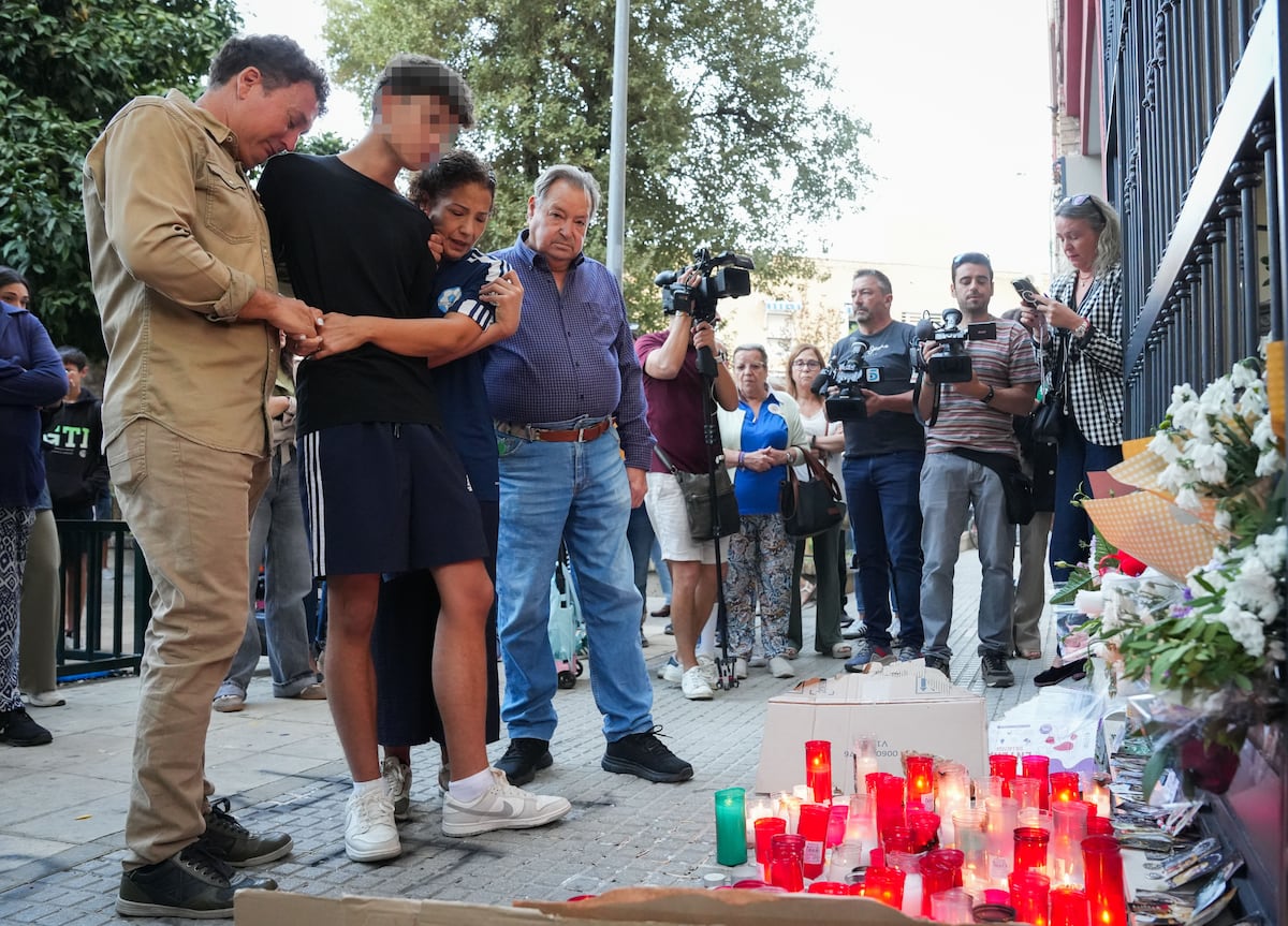 La familia de Sandra, la niña que se suicidó tras sufrir acoso escolar, este viernes frente al colegio en Sevilla./María José López (Europa Press)