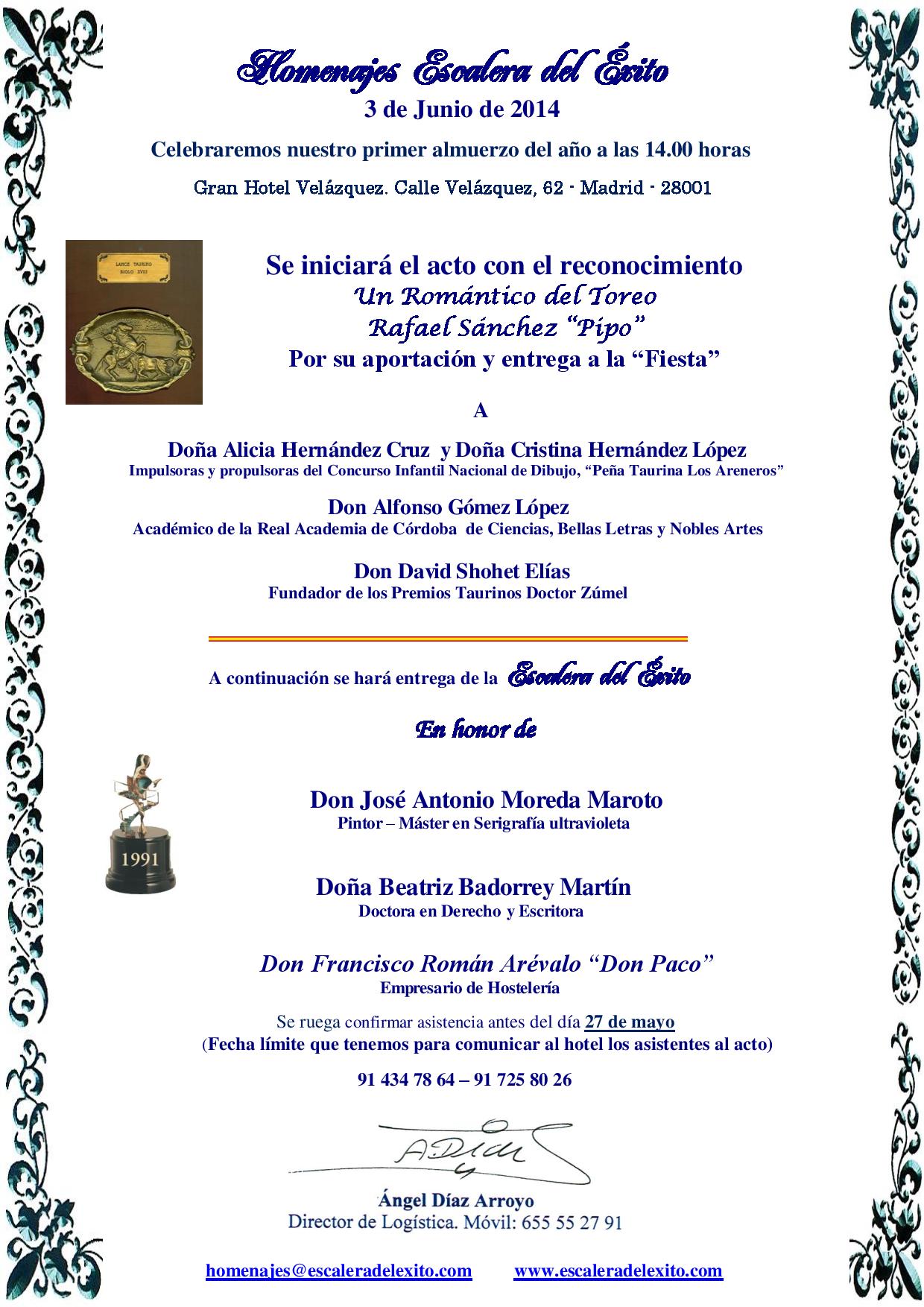 Madrid: El Martes 3 de Junio, Homenajes "Escalera del Éxito" de la Fundación "Sabios del Toreo".