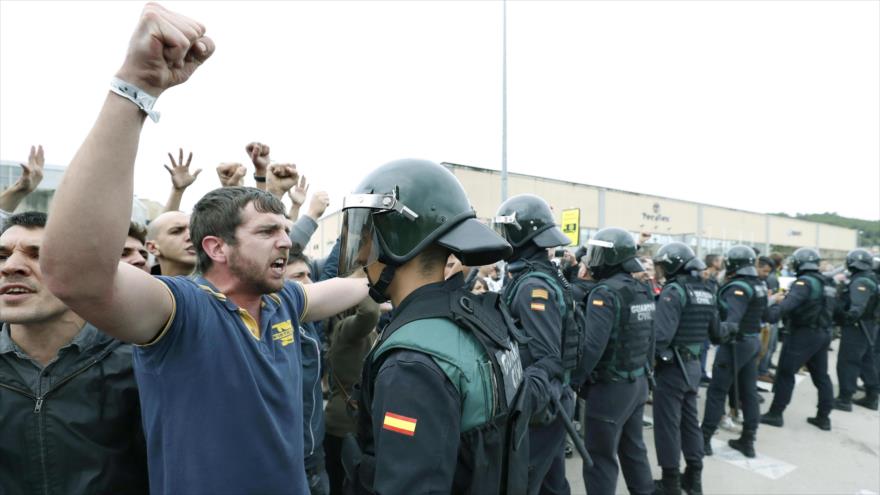| Separatistas catalanes increpan a guardias civiles. |