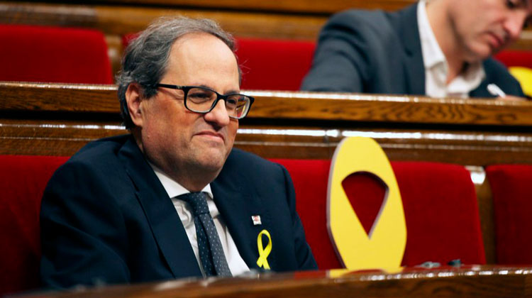 | Puigdemont y Torra, en segundo plano. |