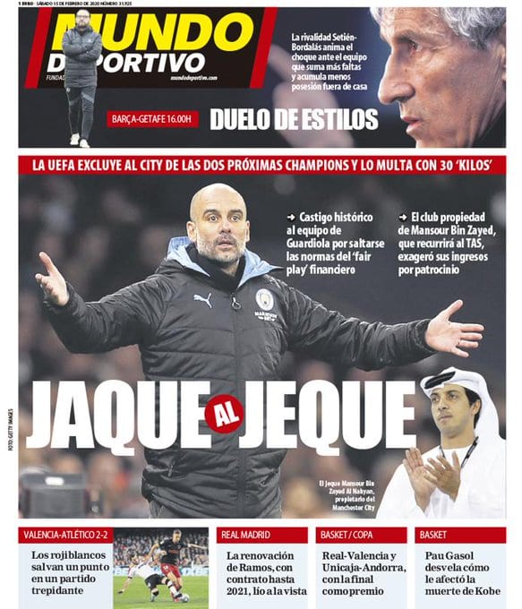 La noticia de la sanción causa en el madridista una primera reacción de regocijo y una segunda de expectativa. El regocijo está justificado en virtud de las rencillas deportivas con el entrenador del City, acumuladas a lo largo de los años. Decir que el madridista lamenta que Guardiola (con su permanente politiqueo y su proverbial hipocresía y sus sibilinas faltas de respeto al Madrid) sufra un descalabro como quedarse dos años sin Champions sería mentir, aunque cabe la opción de que el de Sanpedó abandone el barco antes del naufragio. Ver encajar este varapalo a un club que, sin apenas currículum europeo de fuste, ha cimentado toda su fortaleza en el apoyo de un petroestado puede en todo caso ocasionar el cosquilleo inconfundible de la justicia poética.