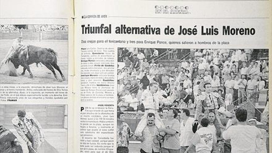 - Esa tarde, del 30 de mayo de 1996, forma parte de los principales recuerdos de toda mi carrera taurina. Era una ilusión mía de siempre tomar la alternativa en Córdoba y el poder hacerlo formó parte de un proceso natural: torero de Córdoba, plaza importante, cartel de lujo con Ponce y "Finito"...y culminación de mi etapa novilleril fraguada en las plazas más importantes. Esa feria toree dos tardes. Se cumplió un sueño.