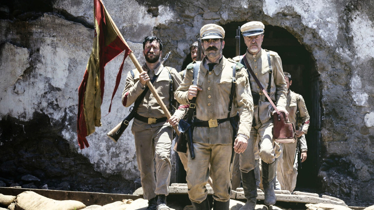 Ricardo Rodríguez, doctor en Derecho y magistrado, narra en esta columna la gesta de los últimos de Filipinas que solo se convencieron de la derrota de España a través de un periódico, «El Imparcial». Sobre estas líneas, una imagen de la película «1898. Los últimos de Filipinas», en la que trabajaron Luis Tosar, Carlos Hipólito, Javier Gutiérrez, Karra Elejalde y Ricardo Gómez. Foto: Prime Video.